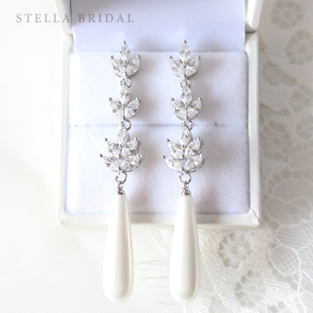キュービックジルコニア ブライダルイヤリングorピアス アマリリス ドロップパールII