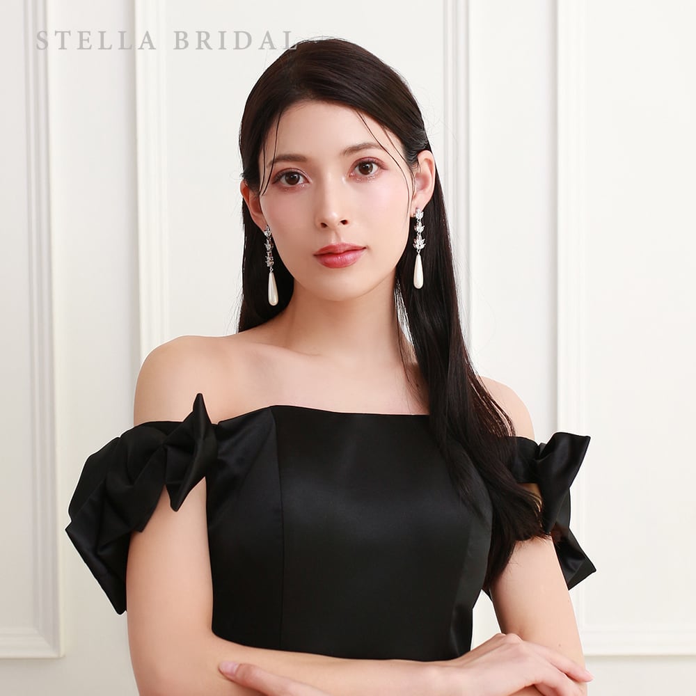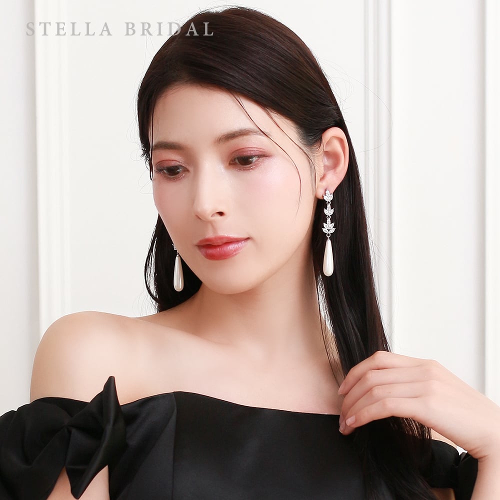 花嫁さまの動きにあわせてきらめくロングタイプのイヤリングは、大人の女性の魅力を引き出す美しいウェディングジュエリー。