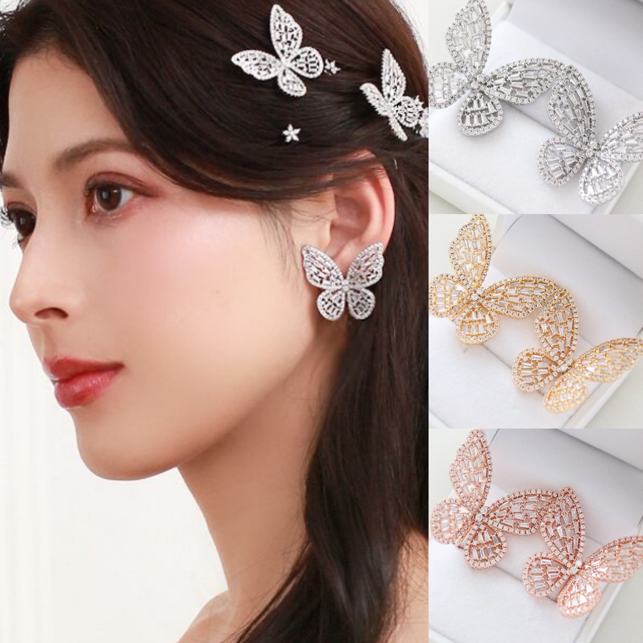 キュービックジルコニア バタフライ ウェディングピアス&イヤリング Papillon II - パピヨンII |ブライダルアクセサリー