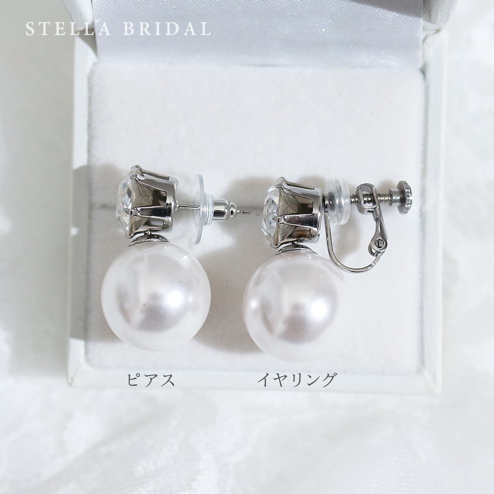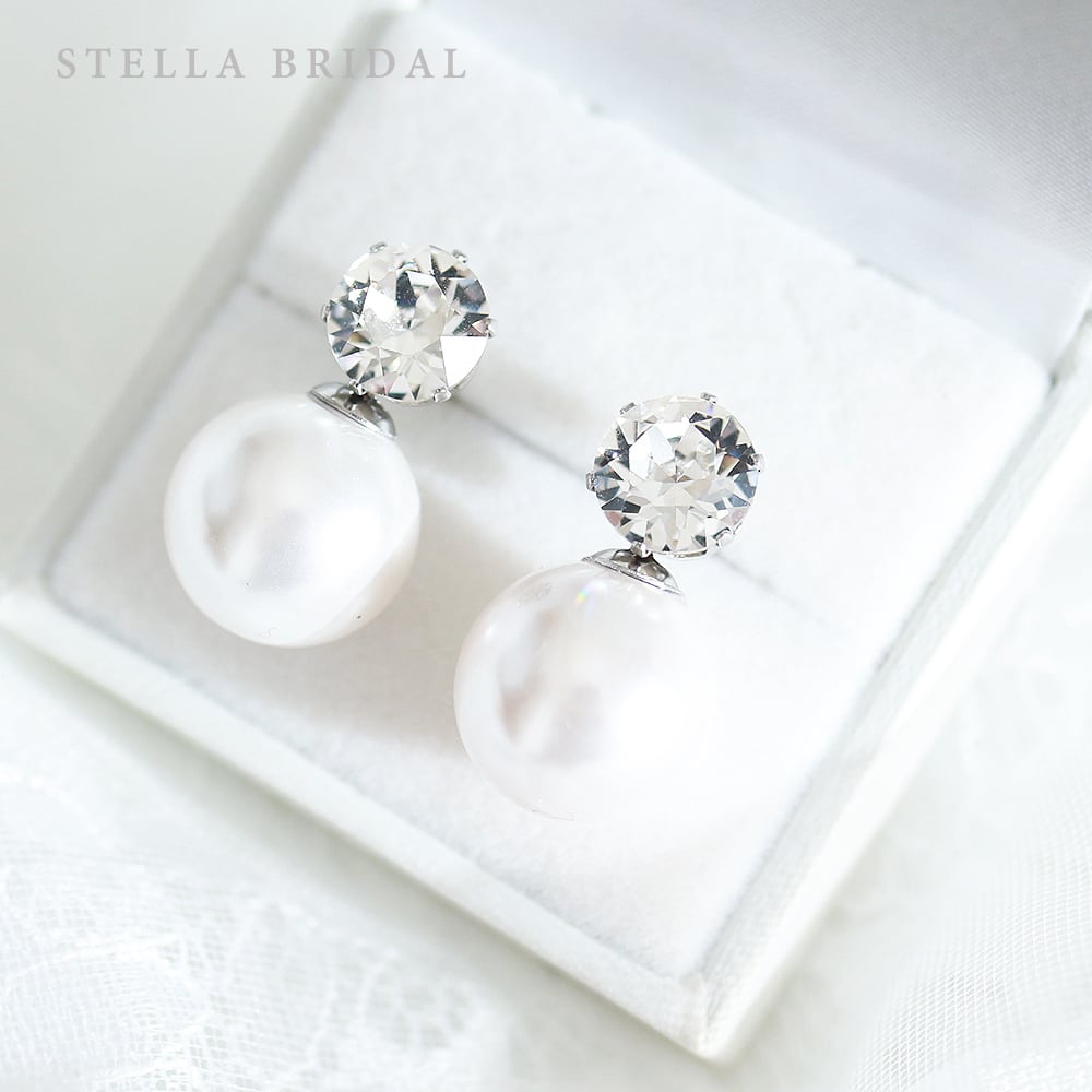 スワロフスキークリスタルが放つ眩い輝きと上品な艶めきを添えるパールを組み合わせたブライダルイヤリング&ピアス。