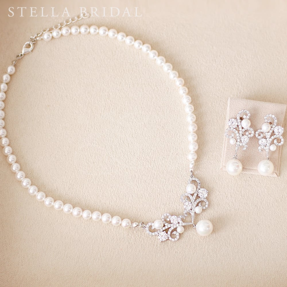 【OUTLET/受注生産品】キュービックジルコニア ウェディングジュエリーセット アニータ ペルル / ネックレス・ピアス
