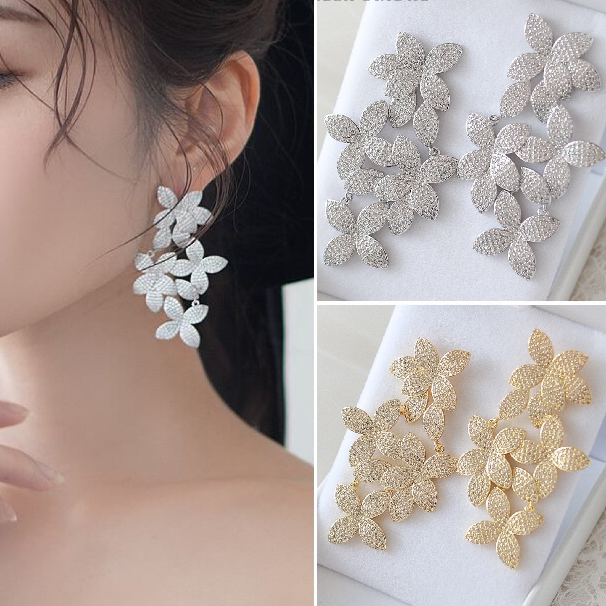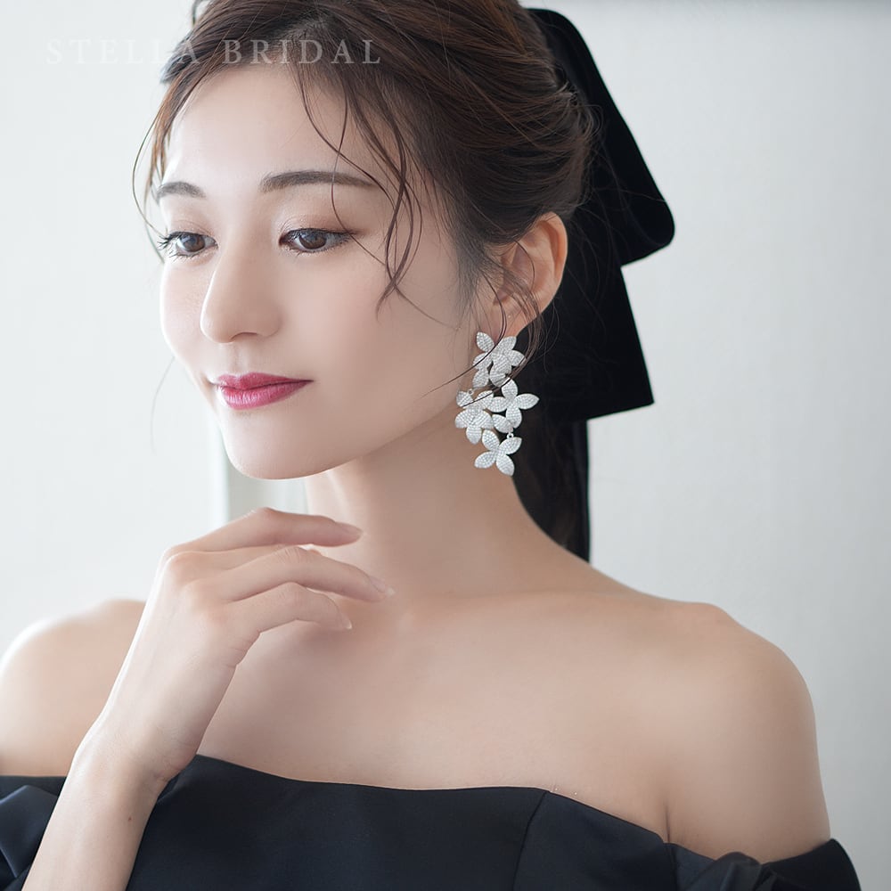 キュービックジルコニア ブライダルピアスorイヤリング トリフォリ Trifori | ウェディングアクセサリー