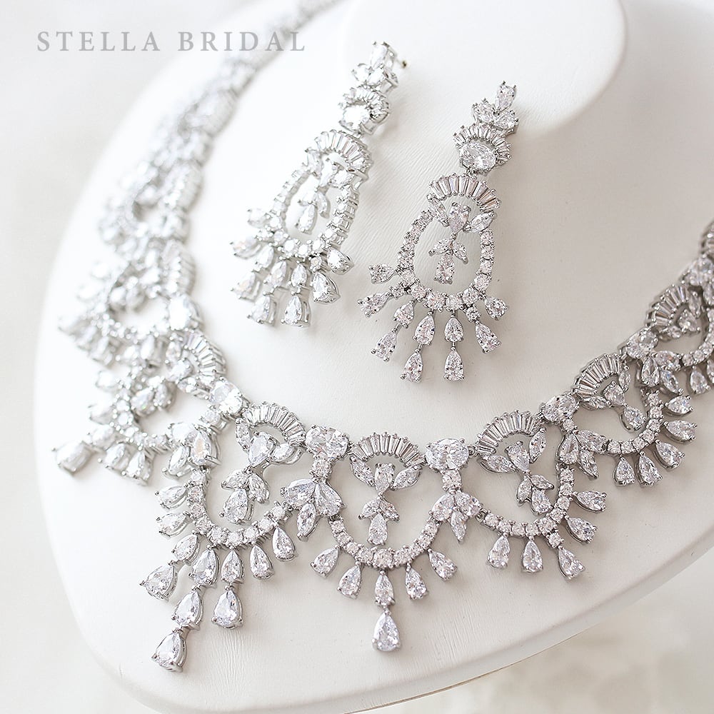 キュービックジルコニア ブライダルジュエリーセット <Ducelle - デュセル> / ネックレス&ピアスorイヤリング|ブライダルアクセサリー
