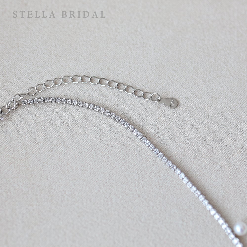 [4月の新作]SV925*淡水パールとキュービックジルコニアのステーションネックレス チョーカー|テニスネックレス|純スターリングシルバー【受注生産品】