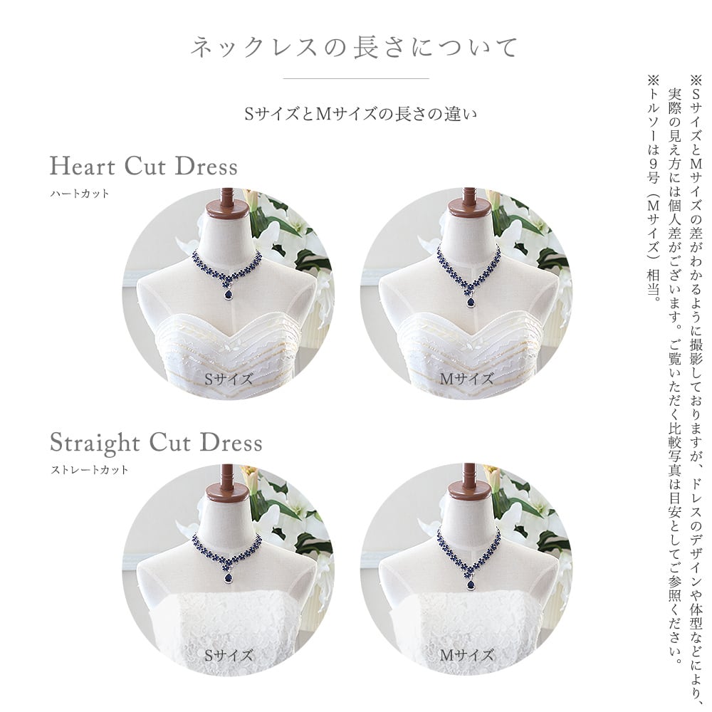 ネックレスのトップには約2cmの大つぶストーンとパヴェセッティングされたジルコニアが花嫁様が動くたびに揺れ、美しくきらめきます。
