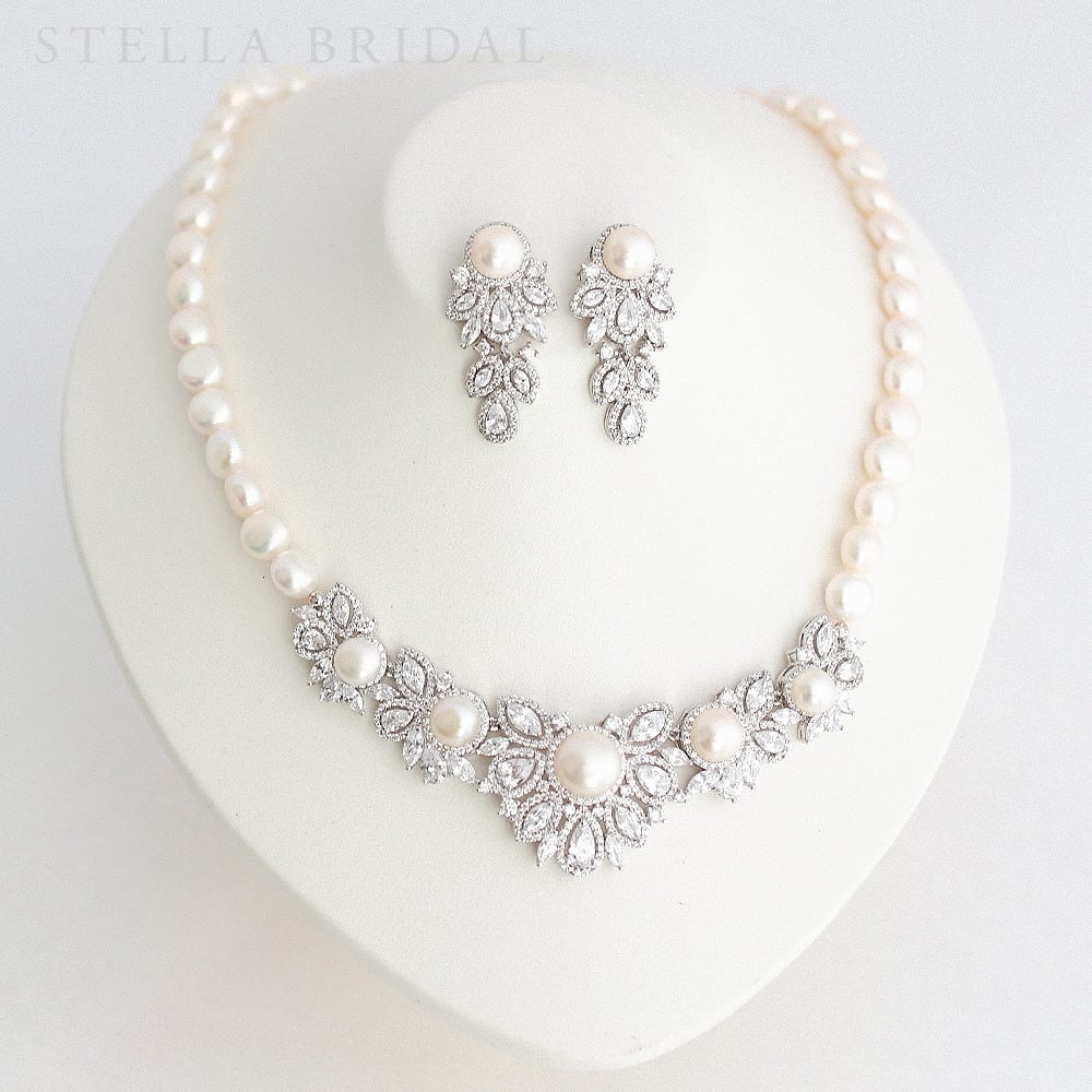 【受注生産品】キュービックジルコニア ウェディングジュエリーセット Angelina - アンジェリーナ / ネックレス&イヤリングorピアス