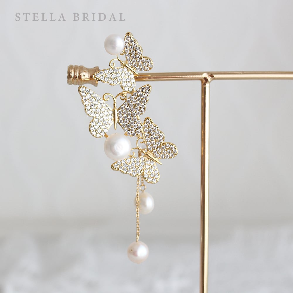 大人フェミニンなムードのバタフライデザインに上質でツヤツヤな淡水パールを合わせる事で、上品な印象もプラス。