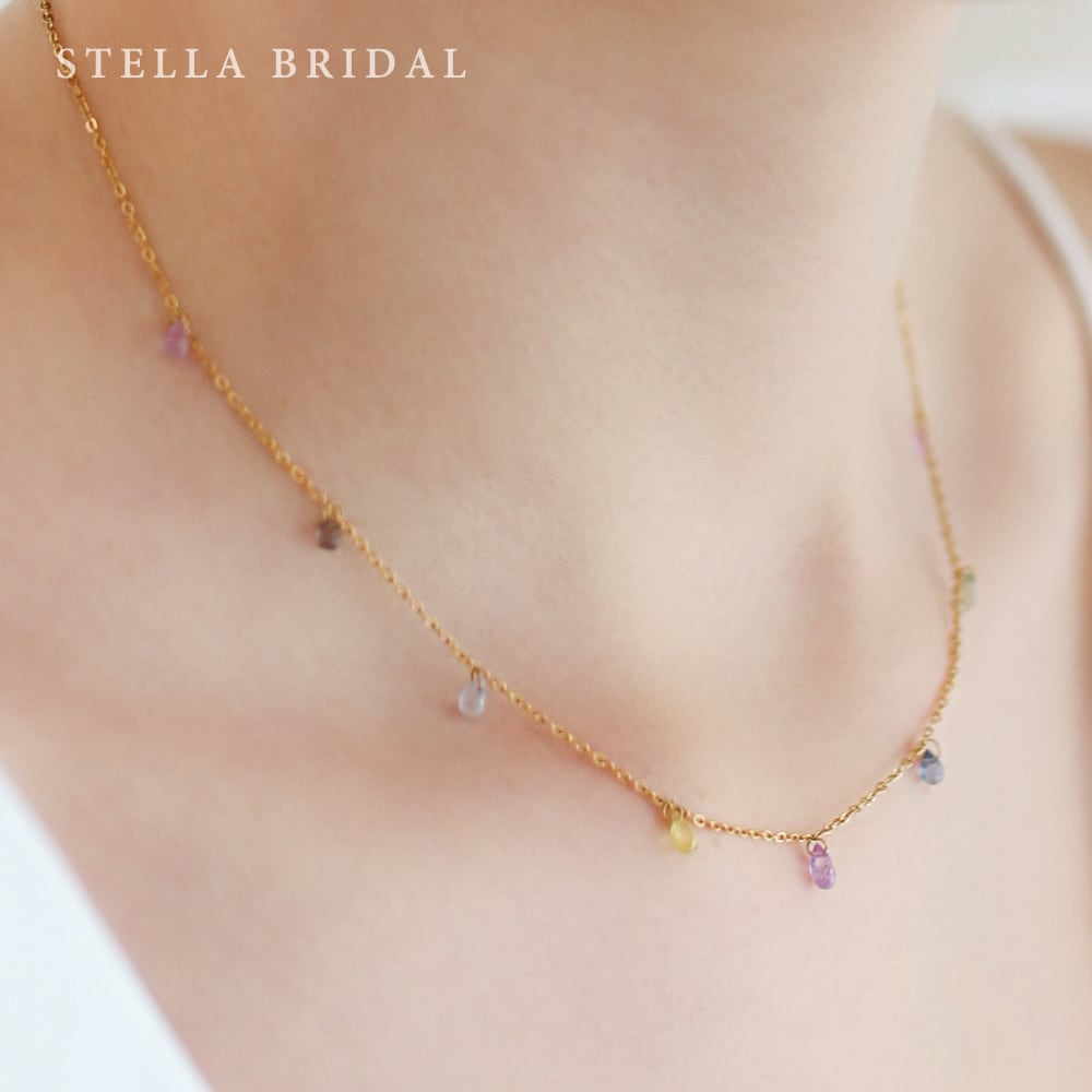 当店ベストセラーのステーションネックレス「ベル・ルミエール(https://www.stellabridal.jp/items/46332661)」にマダガスカル産のカラフルな天然サファイアを用いたデザインが加わりました。