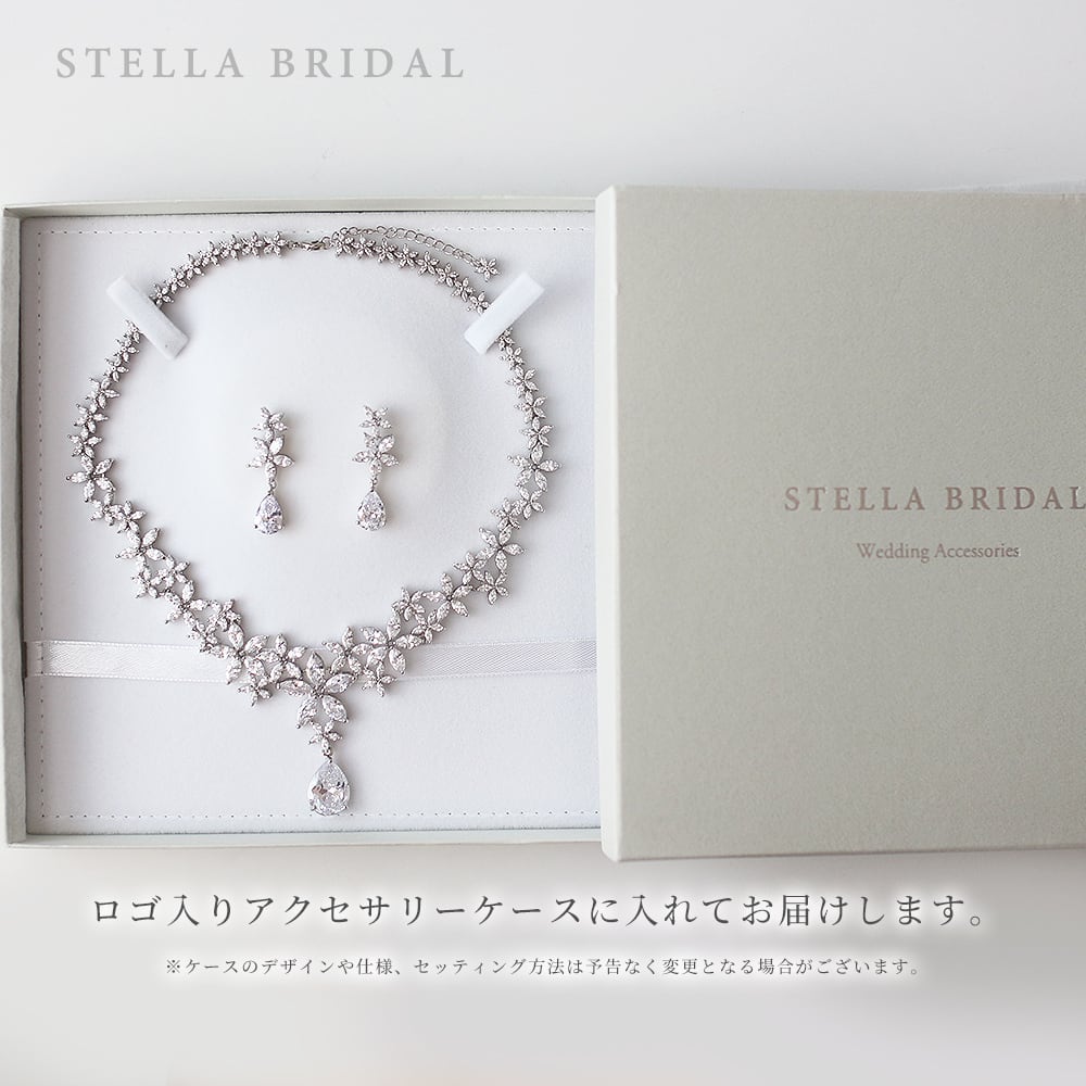 キュービックジルコニア ウェディングジュエリーセット マーキスフラワードロップビジュー ネックレス&イヤリング・ピアス