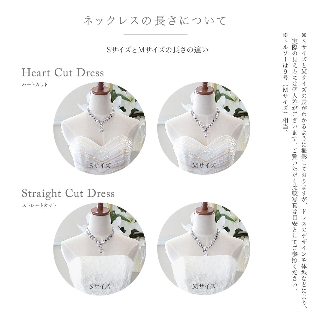 ネックレスのトップには約2cmの大つぶジルコニアが花嫁様が動くたびに揺れ、美しくきらめきます。