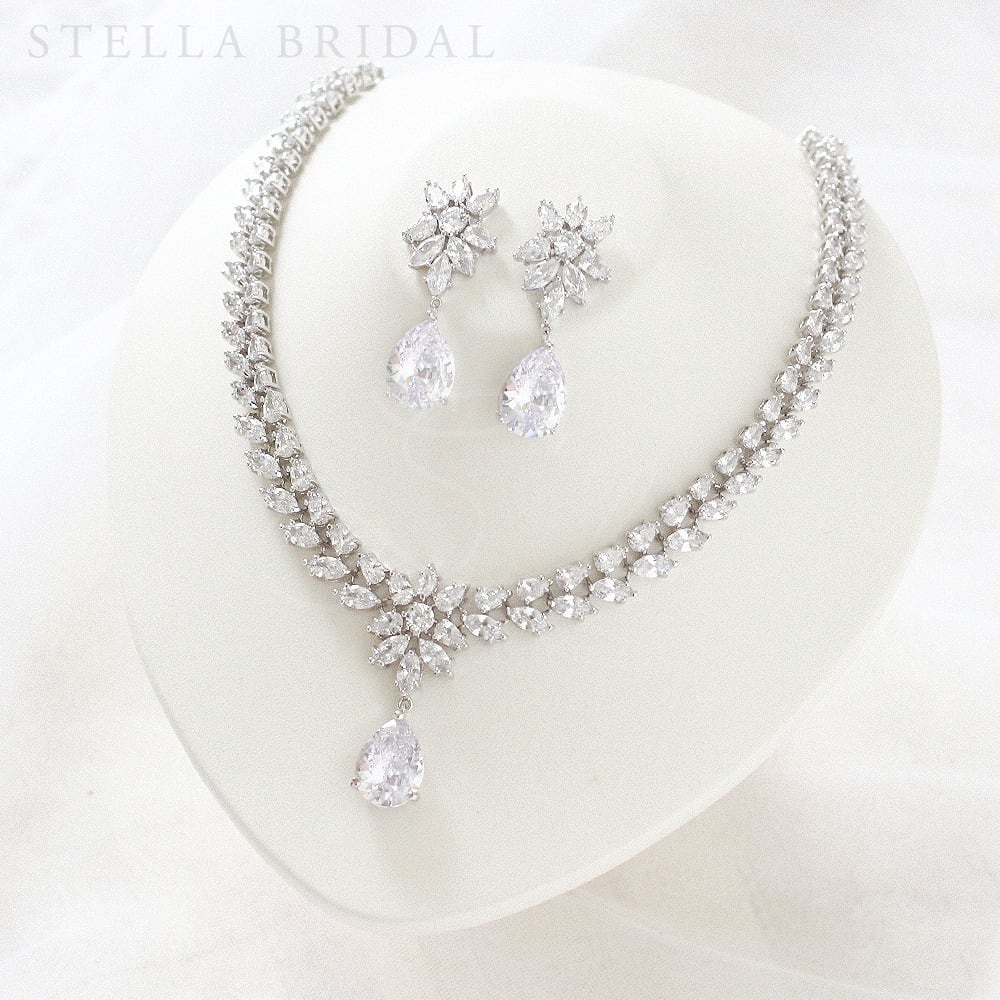 キュービックジルコニア ウェディングジュエリーセット ジュディット ネックレス&イヤリングorピアス
