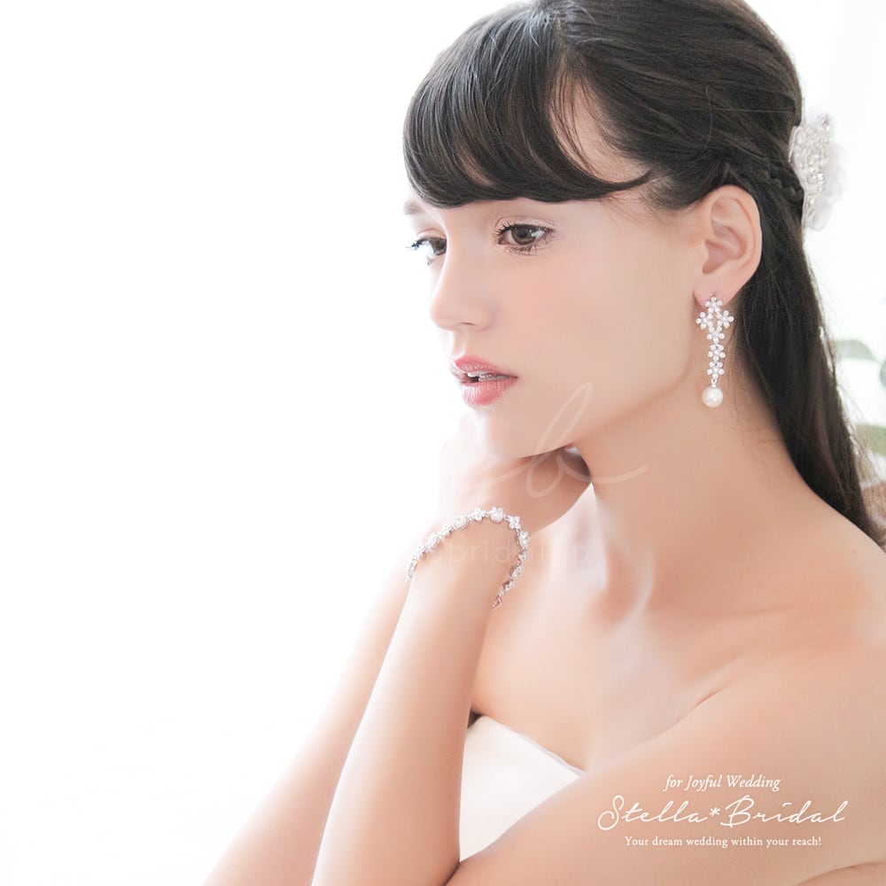 キュービックジルコニア ウェディングピアス&イヤリング ドロップフラワー